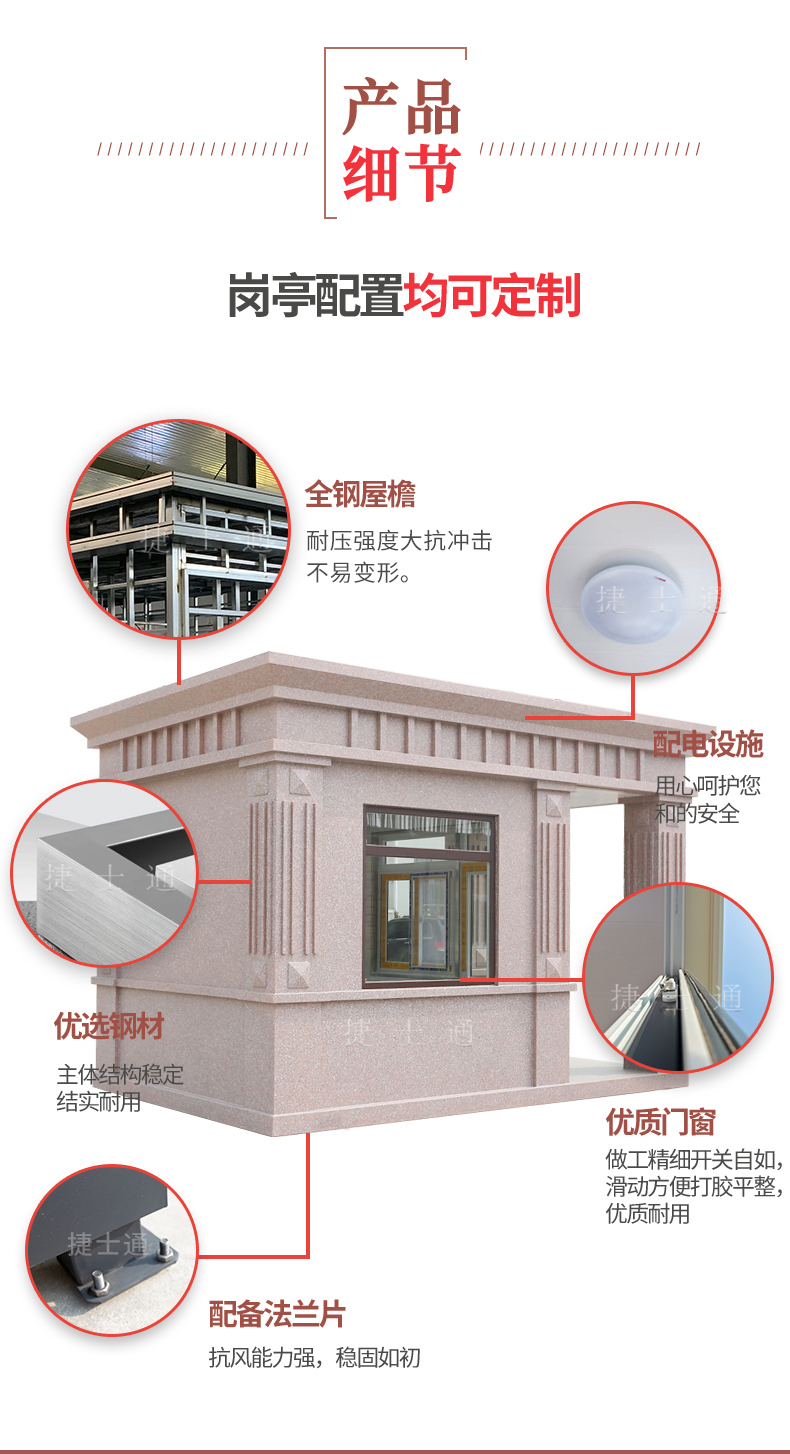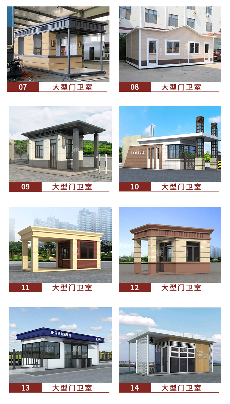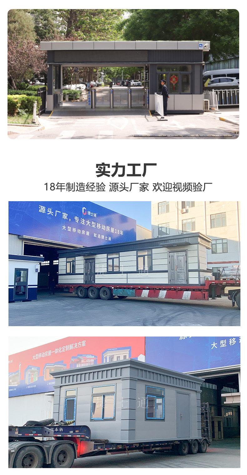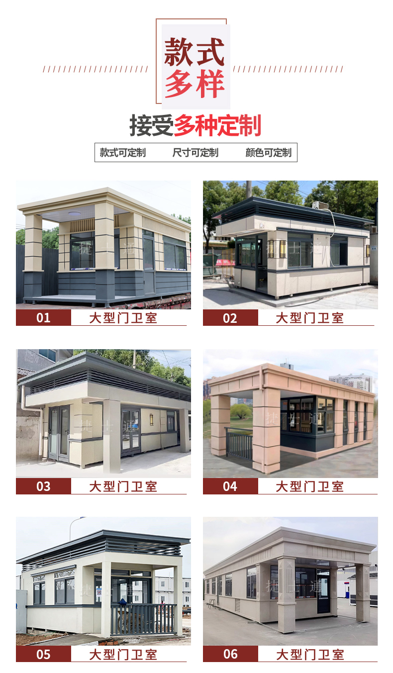 定制選項(xiàng):門衛(wèi)亭的外觀和功能可以根據(jù)具體工廠需求進(jìn)行定制。這包括選擇材料、外觀設(shè)計(jì)、尺寸和設(shè)備配置。