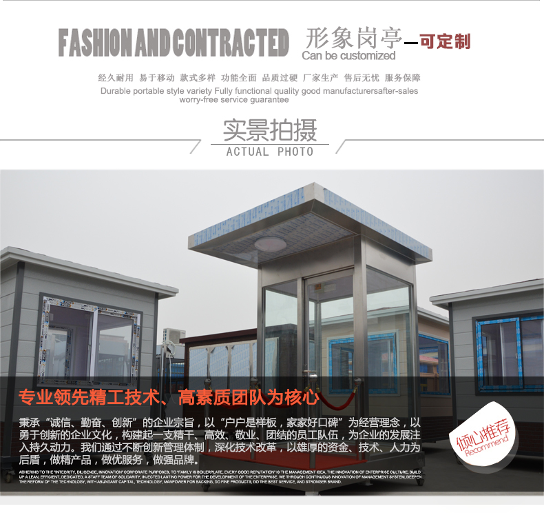 由于玻璃是透明的,視野好,玻璃崗亭用途廣泛,可用到小區(qū)保安,交通收費,以及街道治安等