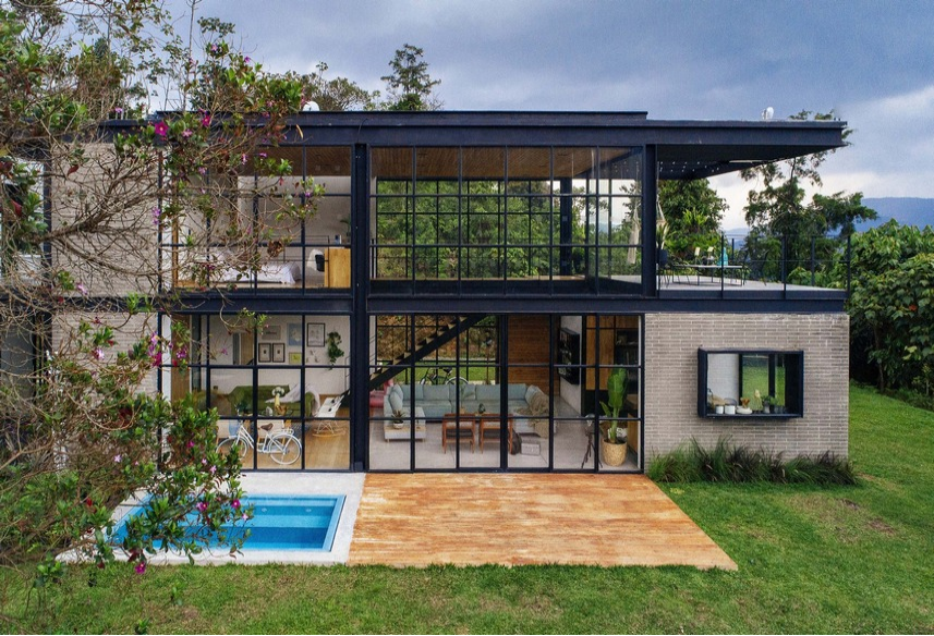這個(gè)釉面金屬結(jié)構(gòu)集成房屋有兩個(gè)水平的地板,被真空攔截,房子的空間朝向這個(gè)樓層。沒(méi)有墻壁,