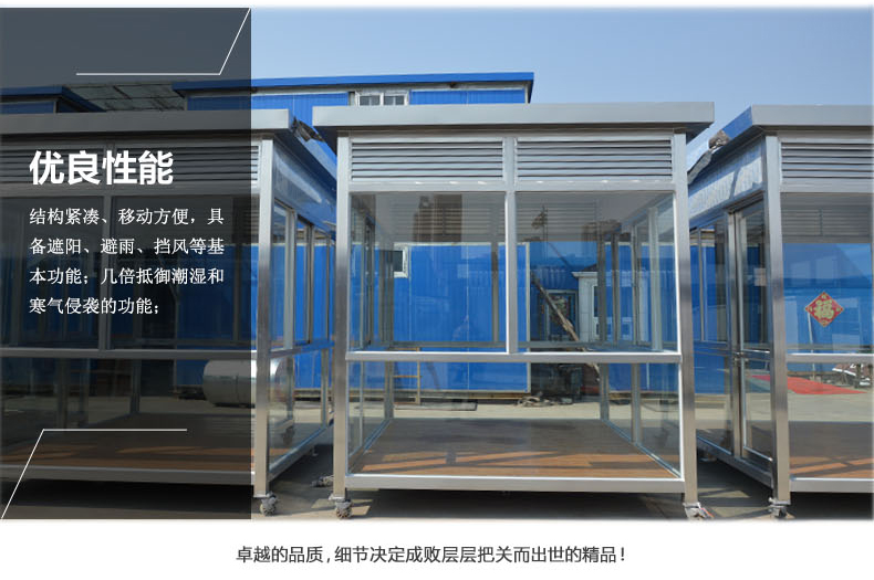 可根據(jù)您的要求專(zhuān)門(mén)定做崗?fù)ぃ?br /> 崗?fù)ふw框架一體焊接,墻體為上下鏤空設(shè)計(jì),選用優(yōu)質(zhì)鋼化玻璃,給內(nèi)部吸煙更加通透的感覺(jué),避免壓抑,