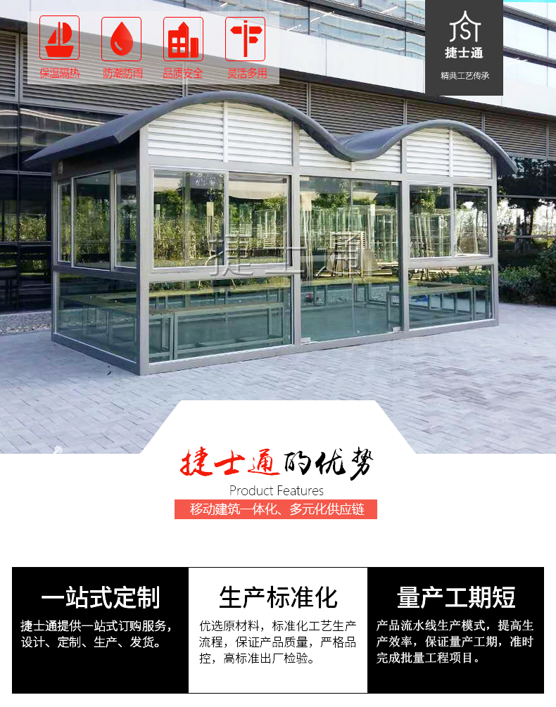 標(biāo)準(zhǔn)配置 :屋頂鍍鋅板靜電噴涂,PVC吊頂,墻體玻璃材質(zhì)(鋼化、中空、有色玻璃等可定做),照明燈,漏電保護(hù)器,插座組,開關(guān),長(zhǎng)凳,煙灰缸(如需空調(diào),排風(fēng)扇請(qǐng)聯(lián)系客服。咨詢電話:15822882616,公司網(wǎng)址:m.wagerqb.com。