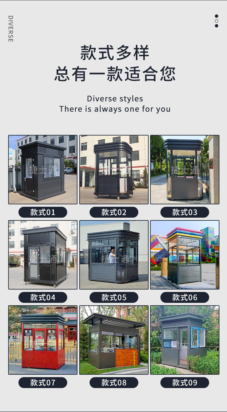 以前的收費崗亭一般是不銹鋼材質(zhì),在就是鍍鋅板氟碳漆,款式樣式也比較單一,就現(xiàn)在的廠家研發(fā)能力來說,針對停車場已經(jīng)能有各種各樣的款式了,比方最近客戶熱衷于購買我們的新津灣款保安崗亭